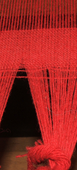 Gewebeanfang auf horizontalem Webstuhl (Bramscher Rot) |